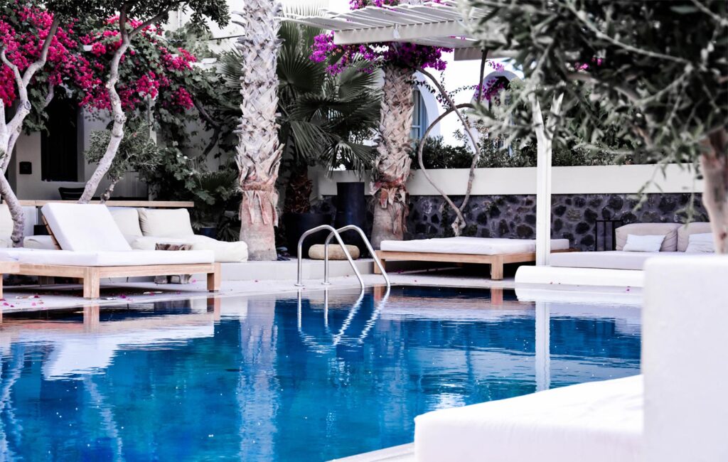 Palmeria Hotel is one of the most recognizable coastal resorts, located in fancy Perissa area of Santorini.